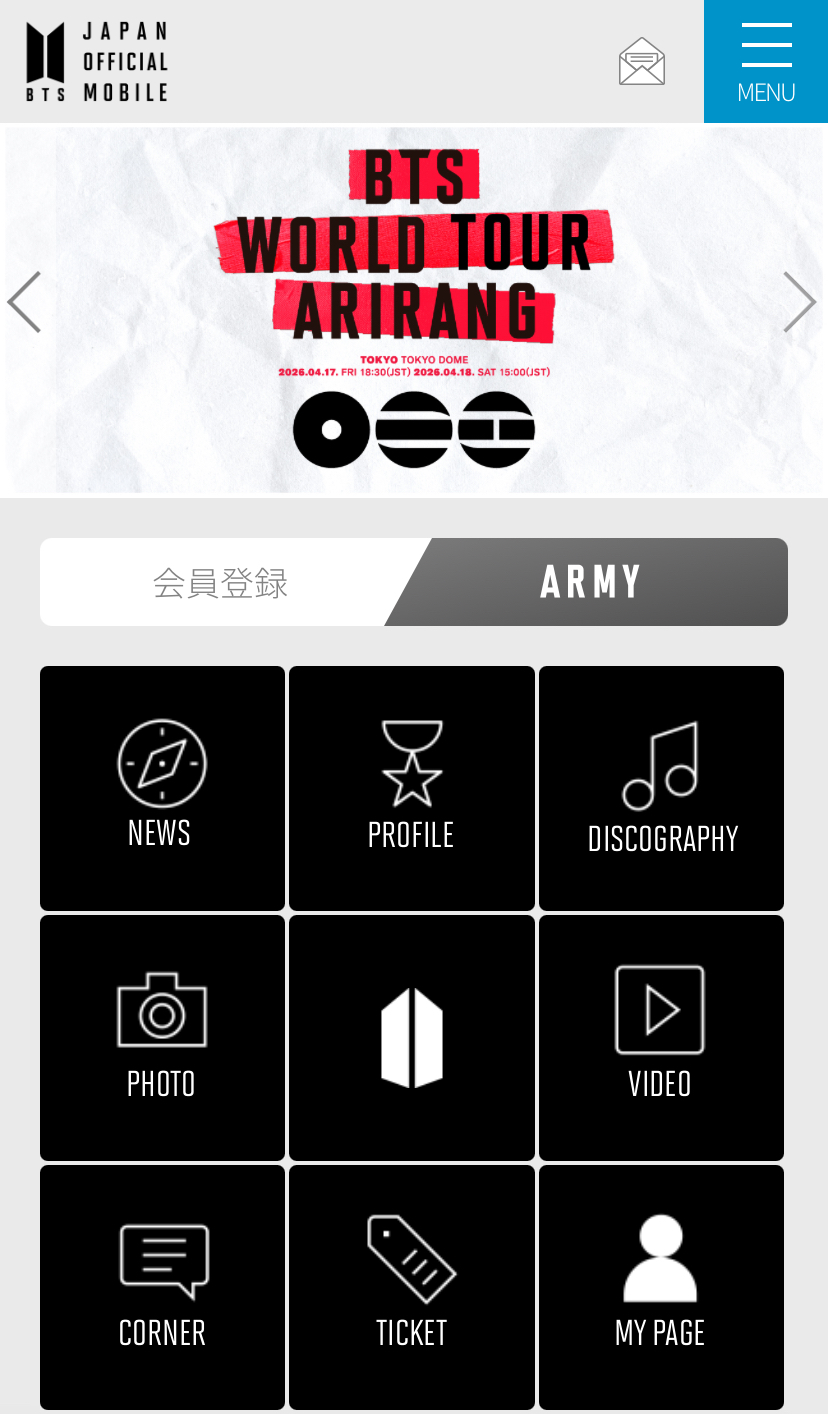 - 会員登録を押す(真ん中あたりARMYの横)